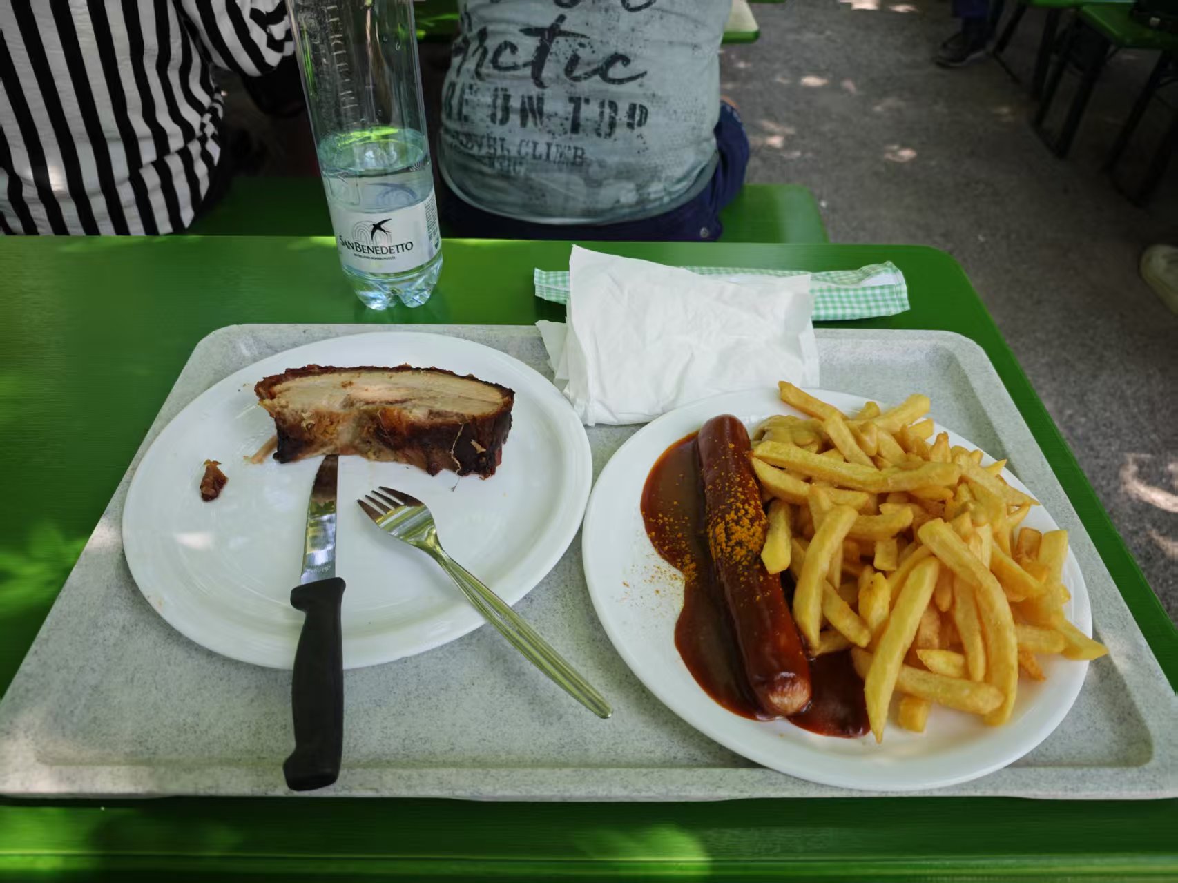 德国著名的猪肘(我没尝试),脆皮猪肉,烤肠,巧克力蛋糕。还遇到了一些奇怪的面条和好吃的意大利菜。